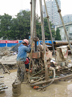 超越水利水電基礎處理項目領域,作為公司參與城市地鐵建設領域(修建階段)的項目,自今年4月份進場以來,公司領導非常重視,多次深入現場調研分析,探索改進施工工藝,優化資源配置,根據現場需要,配備了10名管理人員,68名經驗豐富的鉆孔灌漿技工,22臺套鉆孔設備,12套灌漿設備,4套灌漿自動記錄儀,投入到現場管理及施工生產,為滿足甲方工期進度要求提供了保證。