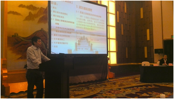 在專題報告中康德忠董事長以三峽大壩為例,詳細闡述了大壩接縫灌漿剩余細縫化學灌漿的施工技術,在國內水工建筑物接縫灌漿領域尚屬首例;此外還重點介紹了洗縫劑的特性及應用,獲得了參會人員的好評。通過本次會議成功的宣傳了公司對外形象,提升了公司的知名度。