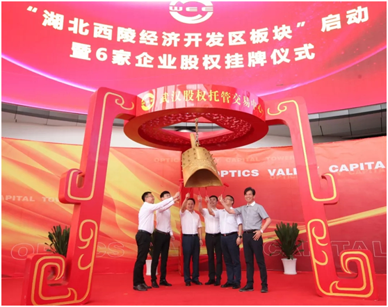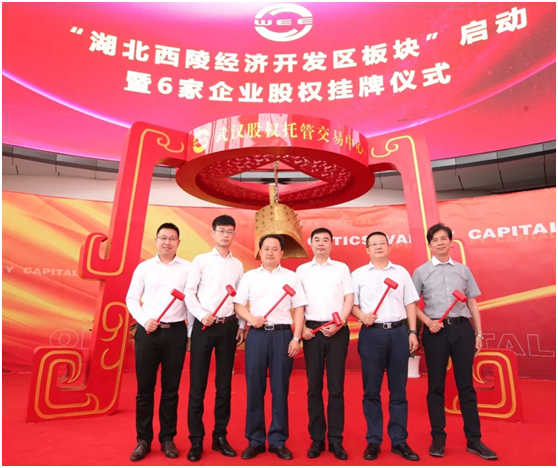 宜昌市西陵區委書記盧斌,區委常委、常務副區長梅軍,區黨組成員、湖北西陵經濟開發區黨工委書記、管委會主任錢東與“瑞派爾”、“寧達環保”、“永興機電”等企業代表一起上臺,為企業股權掛牌鳴鐘開市