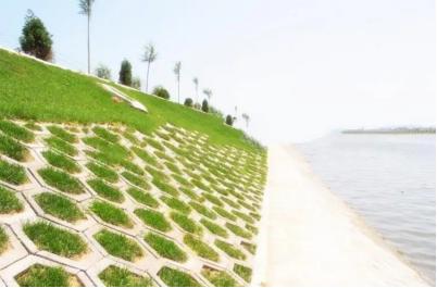 2)水流速度小于每秒2米的,按現狀坡比清表整坡,并鋪設平鋪式砼植生塊,單個構件尺寸宜采用1m*1m。