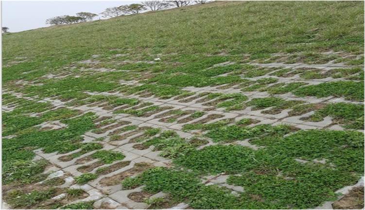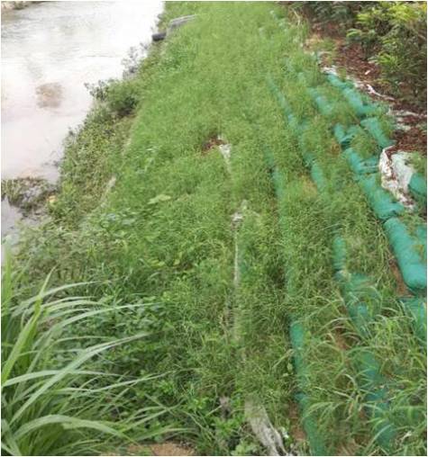 可根據現場邊坡條件選擇合適的植生袋規格,將多孔種植顆粒以及植物草種子填充到植生袋中,再疊碼鋪設到邊坡上。