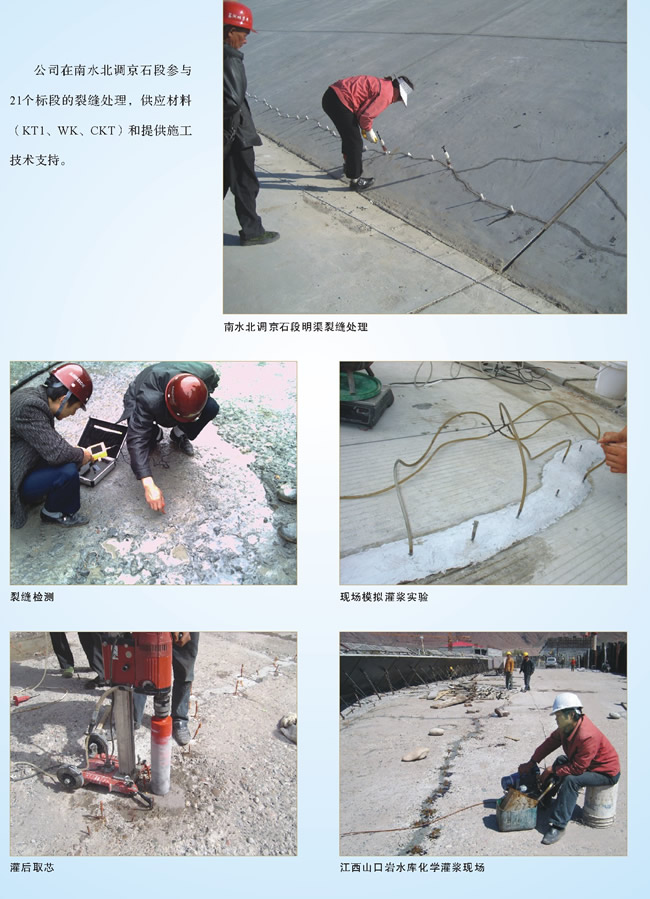 公司在南水北調京石段參于21個標段的裂縫灌漿及缺陷處理